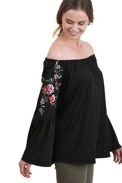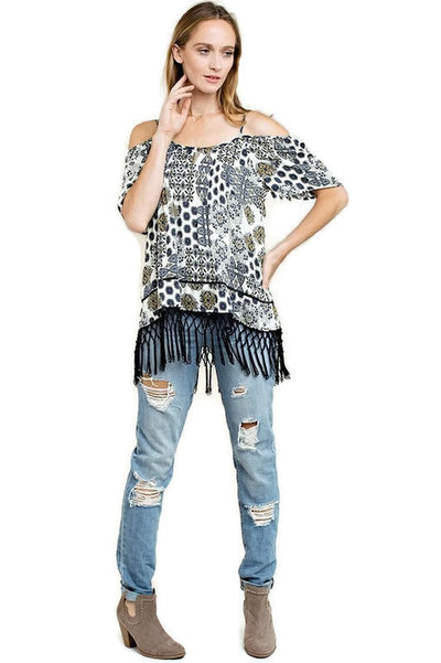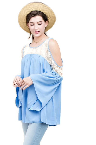 Caged Cold Shoulder Bell Sleeve Top, Denim