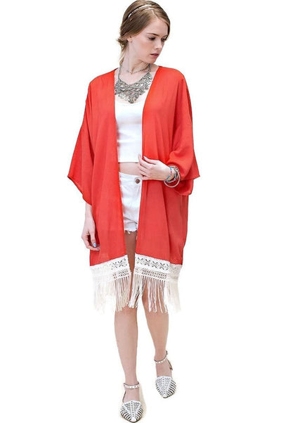 Bohemian Crochet & Fringe Kimono Jacket, Rust