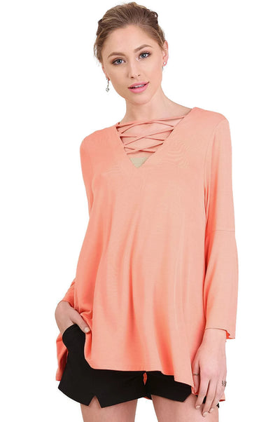 Crossed Bell Sleeve Asymmetrical Tunic, Coral