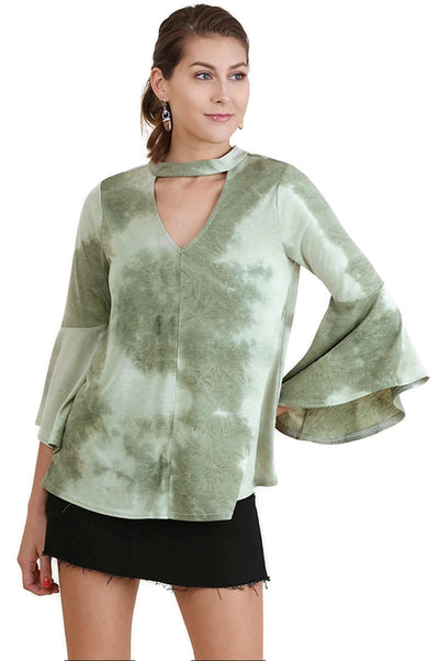 Tie Dye Bell Sleeve Bohemian Top, Sage