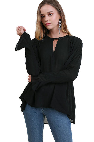 Shirred Sleeve Cold Shoulder Tunic, Black