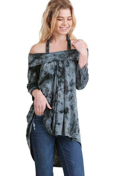 Tie Dye Off The Shoulder High Low Tunic, Black