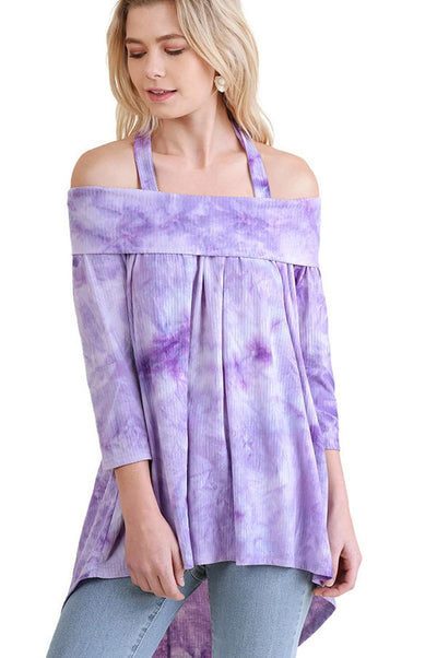 Tie Dye Off The Shoulder High Low Tunic, Purple