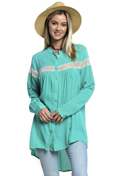 Ruffle & Lace Sleeveless Tunic, Misty Blue