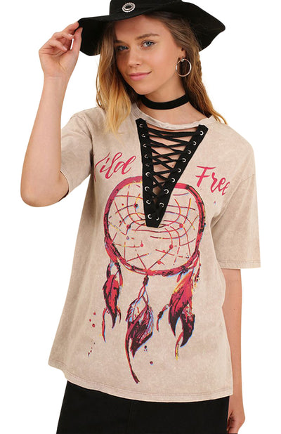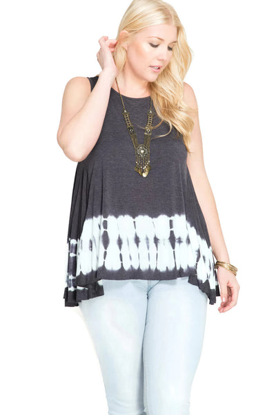 Tie Dye Slub Knit Tank Top with Lace Up Sides, Grey