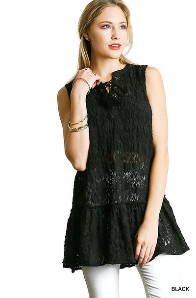 Ruffle & Lace Sleeveless Tunic, Fuchsia