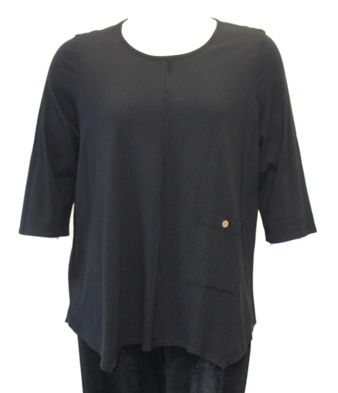 Asymmetrical Pocket Cotton Top, Black